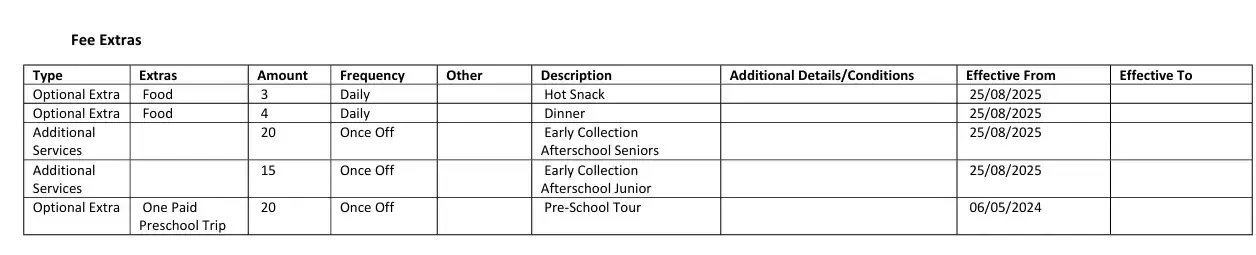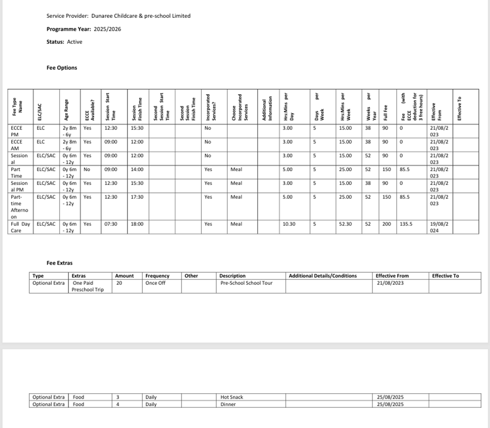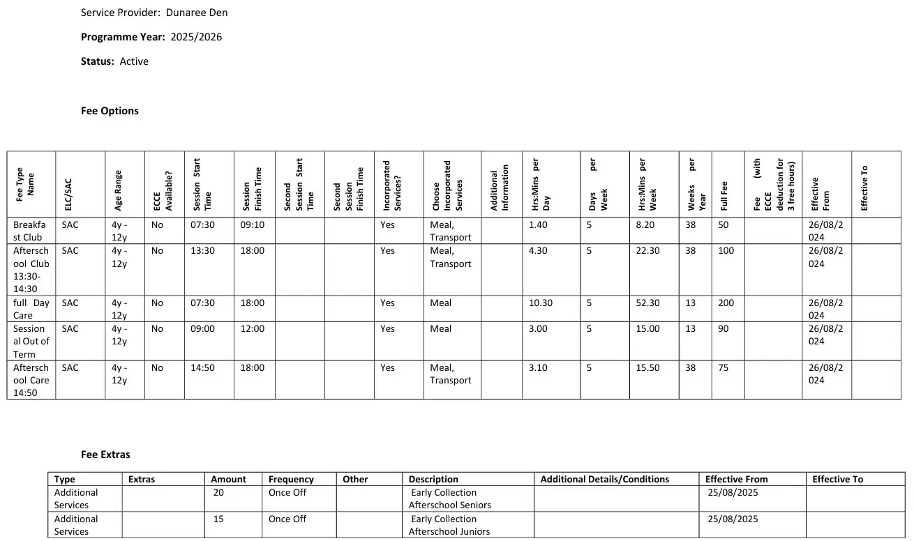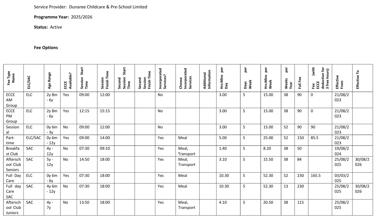 Fees are paid on a monthly basis via the bank. Your individual fees will be calculated for you and invoiced to you via e-mail with your individual NCS deductions and if relevant, free ECCE pre-school hours deducted from the full fee.